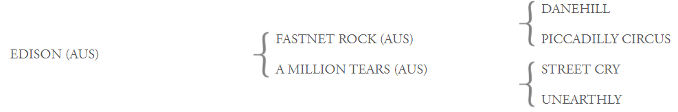 By multiple champion sire Fastnet Rock, Edison is the first foal out of Street Cry mare A Million Tears, a winner at 1600m in her short career. A Million Tears is a half-sister to Gr.1 Australasian Oaks heroine Invest, with both out of Group 1-winning mare Unearthly.